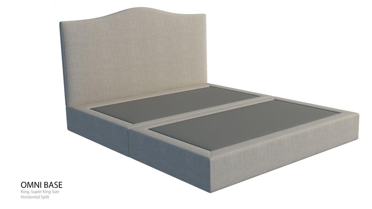 The Omni Ensemble Base is highly versatile and can fit into a range of room sizes. The King and Super King sizes are only available in either horizontal or vertical options. The base is 26cm thick with 9cm hidden legs or 7cm castors. The Omni Ensemble Bases have solid pine slates 8 x 2 cm and the gap between the slats is 7-8cm. On this model the slates are covered in a dust free fabric.