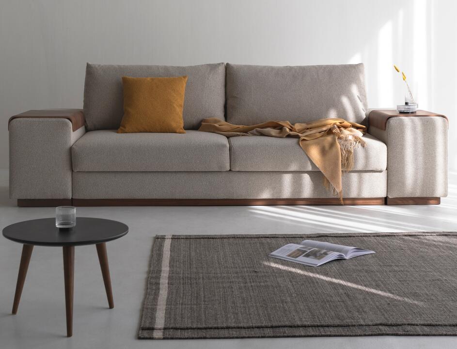 The Arvis Sofa Bed with S38 Arms combines contemporary character with practical comfort. Featuring bold upholstered arms and optional walnut trays, Arvis effortlessly transforms from a stylish sofa into a spacious double bed. Designed for modern living with everyday functionality in mind.