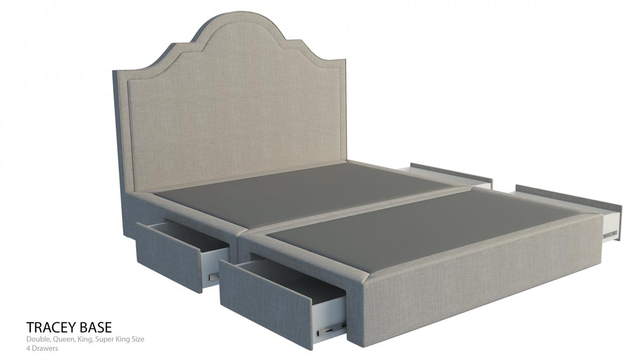 The Tracey Custom Drawer Bed Base is designed to maximise under-bed storage. For the Double, Queen, King, and Super King Base size options, the base will be split horizontally and have 2 drawers on either side of the base. If ordered as a Single or King Single size, the base is only available as a one-piece, and it will have 2 drawers positioned on either the right or left-hand side.