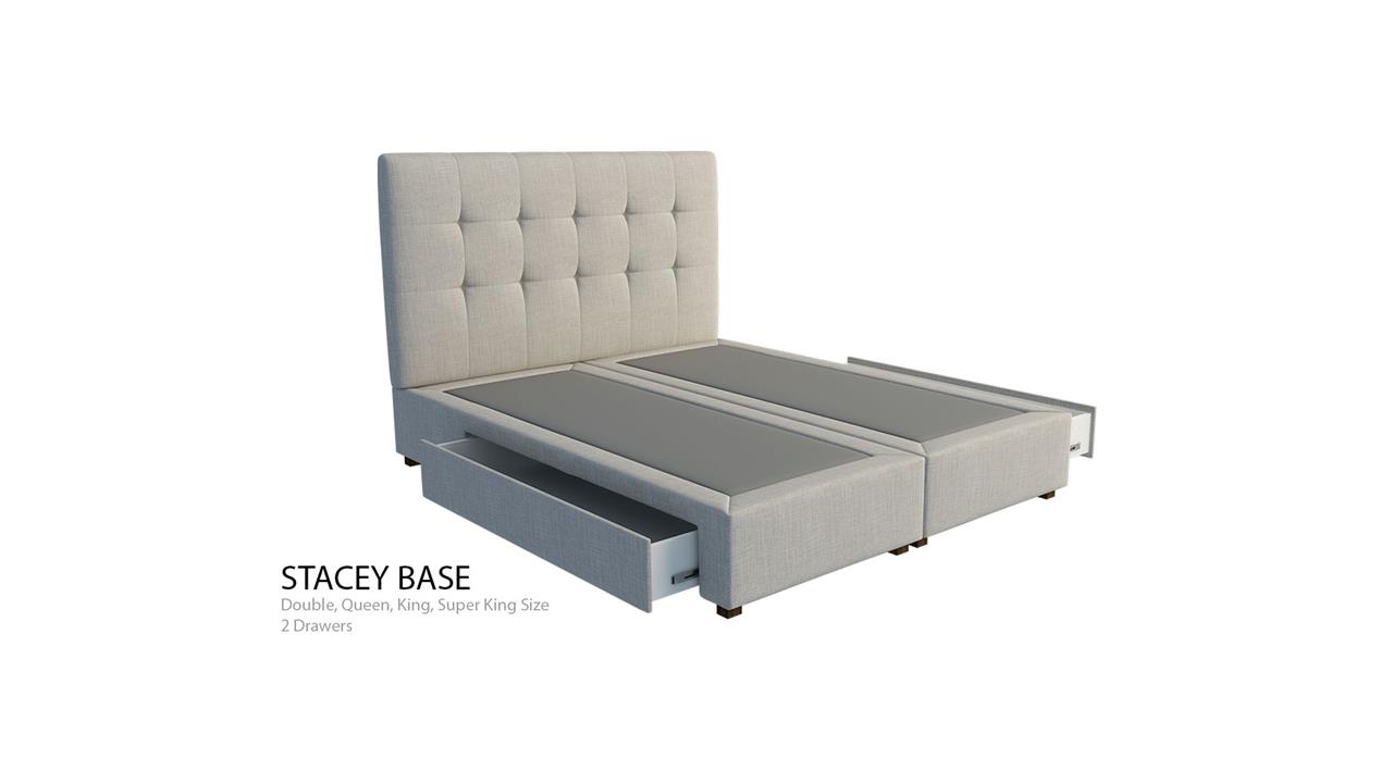 The Stacey Custom Drawer Upholstered Bed Base offers a modern storage space solution. This option is available in Double, Queen, King and Super King base with two deep drawers positioned on both the right and left-hand side of the bed base. If ordered as a Single or King Single size, the base is only available as a one-piece with one drawer, positioned on either the right or left-hand side of the base.