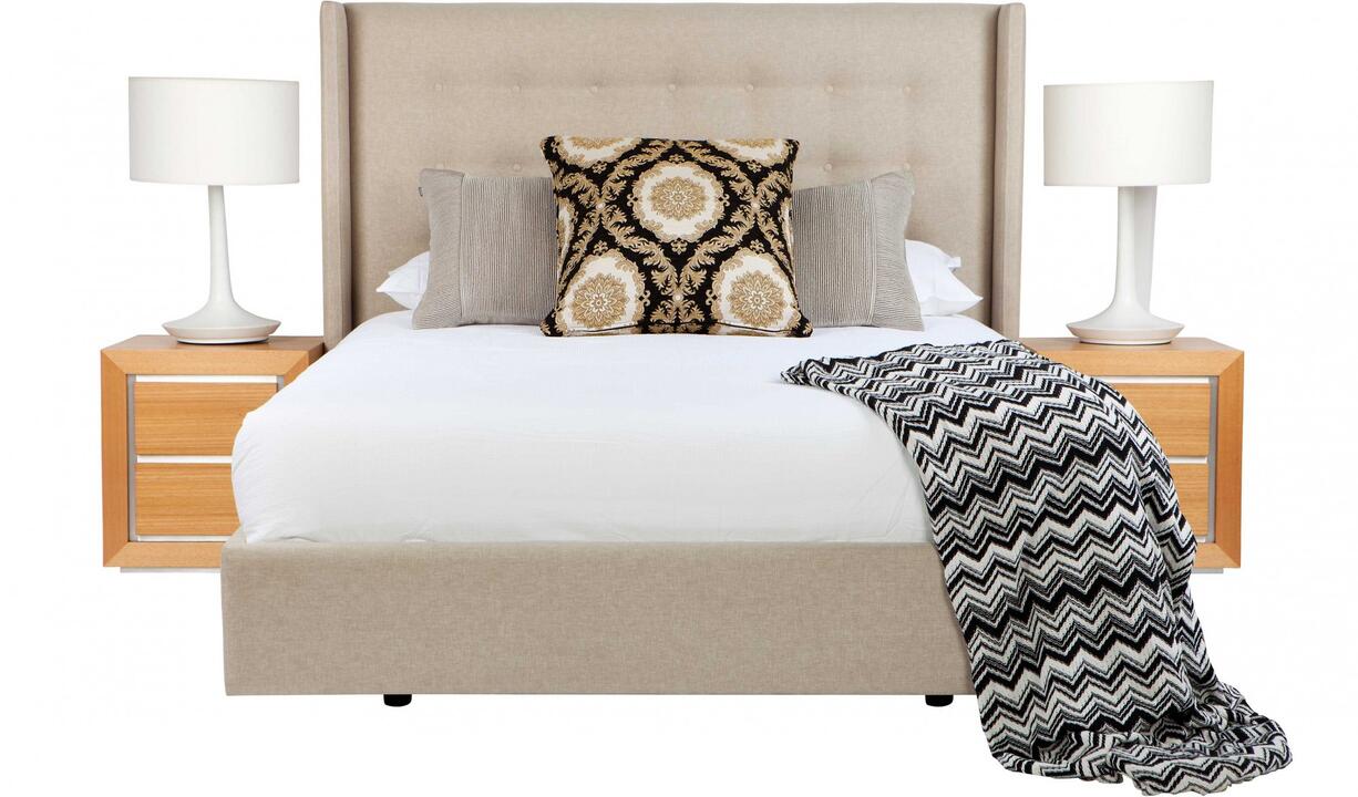 Featuring a winged 140cm headboard with an upholstered button tufting details and available with a range of BedWorks’ own’ bases including gas lift, the Matrix Custom Upholstered Bed Frame is a sophisticated bedding option with a modern twist. This stylish bed brings to mind the classic 1960s era but with a streamlined look to complement any modern bedroom. Available in the full range of standard sizes and with over 20 choices of house fabric colours available from Warwick and Zepel fabrics, this frame also offers a mattress sit in of 5cms and is also fully customisable, so you can add storage options on the base or change the dimensions. Why not contact our sales team today for a personalised quote – 1800 940 596.