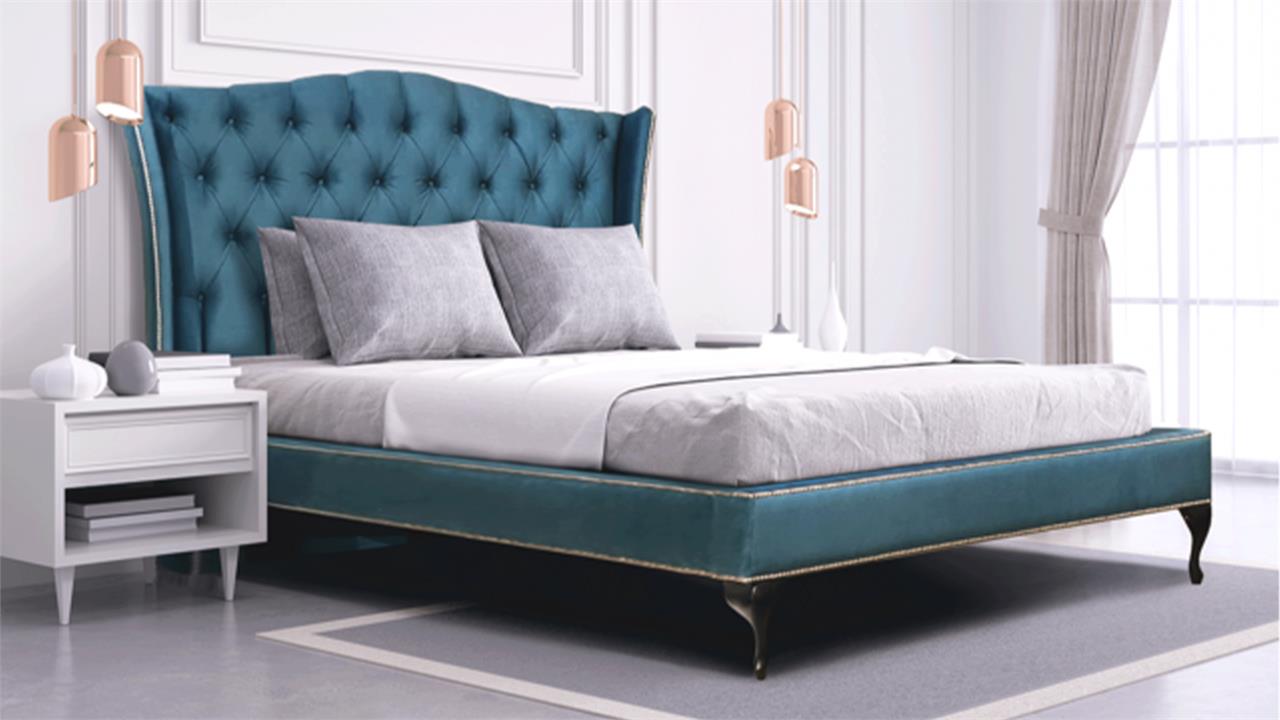 Add a touch of elegance and classic sophistication to your bedroom with the unique French Provincial Look Custom Upholstered Bed Frame. This stunning 140cm-high headboard exudes charm and classic and elegant with its quality upholstery and wing curved top, complete with diamond buttons shaped. The frame sits on cabriole legs 15cm high. The mattress rest 6cm, so you can accessorize this bed with a designer rug.