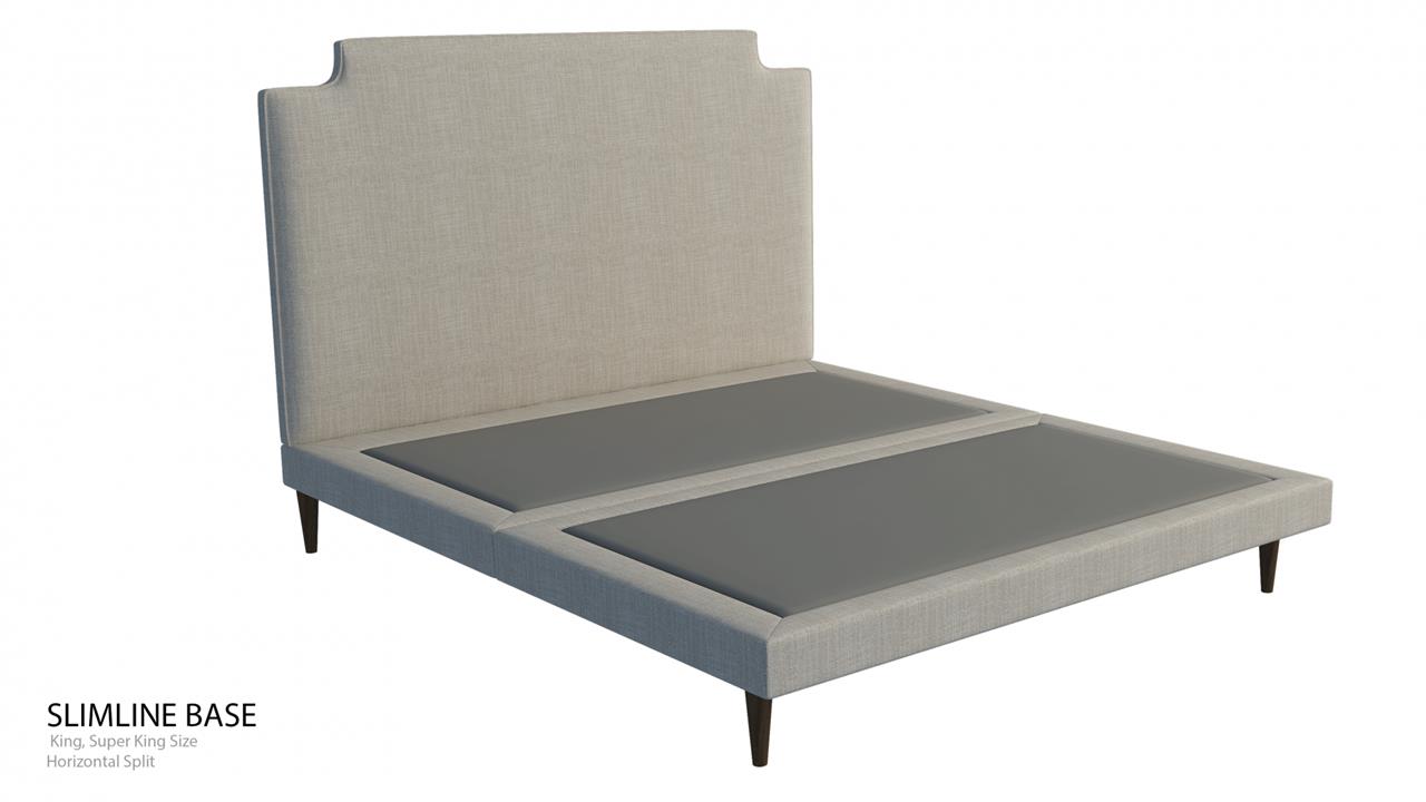 Similar to the Floating Slated base, however, the legs are not recessed. Instead, two legs will be visible at the foot end of the base. It also offers a sturdy 26cm wide side rail, which allows the mattress to easily rest 5cm inside the base.