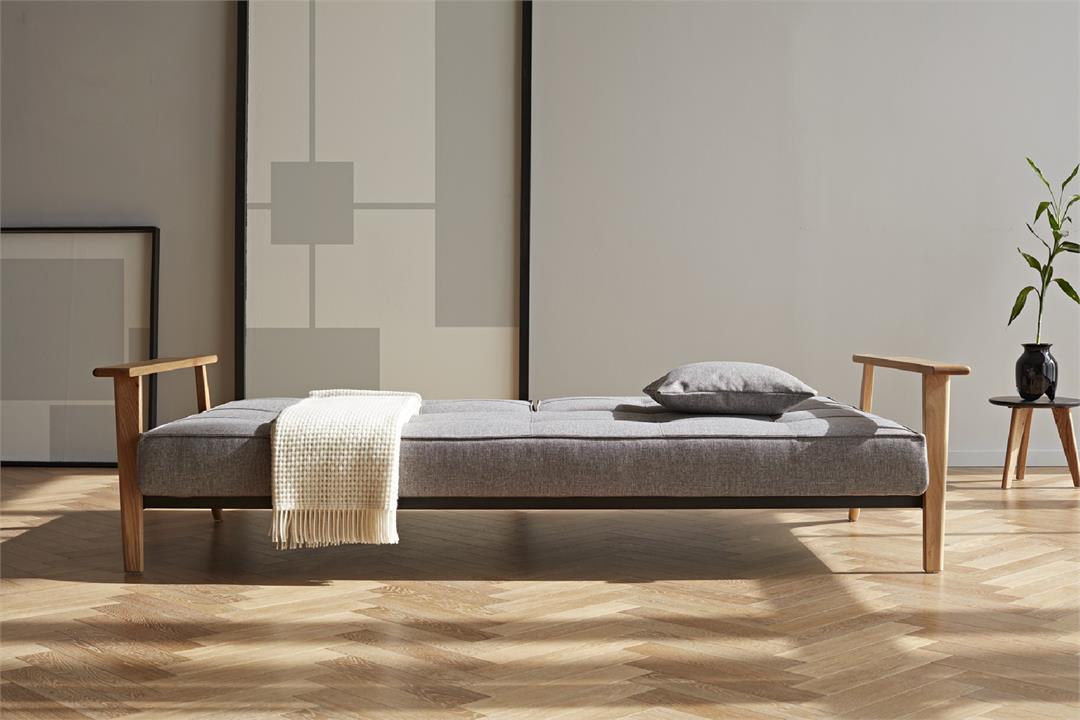 The Splitback Frej King Single Sofa Bed presents a stunning combination of style and function. This 3-seater sofa bed features seat pads and back rest with pin tufting and is then paired with goregoues Frej oak arms and legs for added style. With a myriad selection of fantastic upholstery options, this sofa bed trully is stylish. Beyond style, this sofa bed is also functional as it doubles as a recliner and can be transformed into a king single sofa bed. Beautifully crafted with modern comforts in mind, this sofa bed is a perfect addition to any interior style.