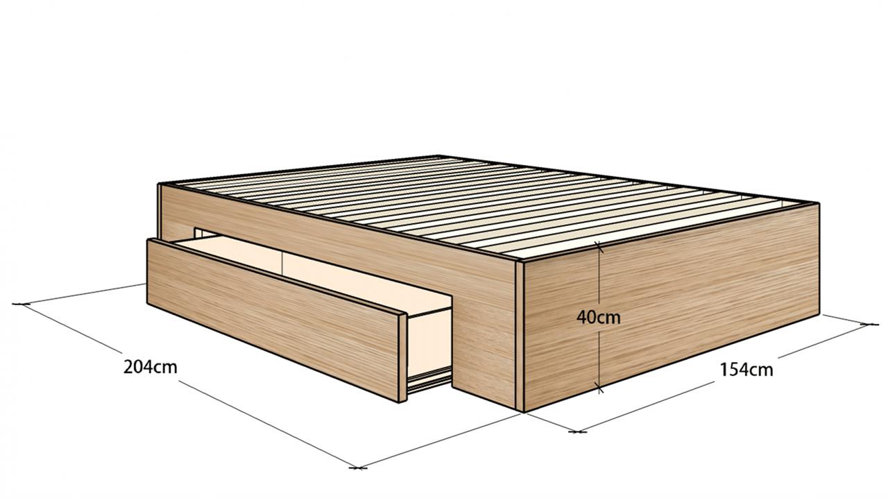 • Single & king single: One large drawer  on the Right or left-hand side of choice, measuring 141Wx 55D x 21H cm